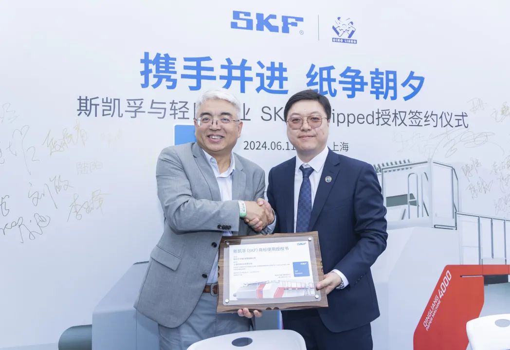 6月11日,斯凱孚與上海輕良在上海成功舉辦SKF Equipped授權(quán)簽約儀式。斯凱孚許可上海輕良在其生產(chǎn)的裝配有SKF產(chǎn)品的紙機(jī)上使用”SKF Equipped”標(biāo)識(shí)。這意味著雙方除在技術(shù)、產(chǎn)品等方面的戰(zhàn)略合作外,在品牌價(jià)值提升上也在進(jìn)行深度合作,共同開啟了追求卓越、創(chuàng)新發(fā)展的全新篇章。